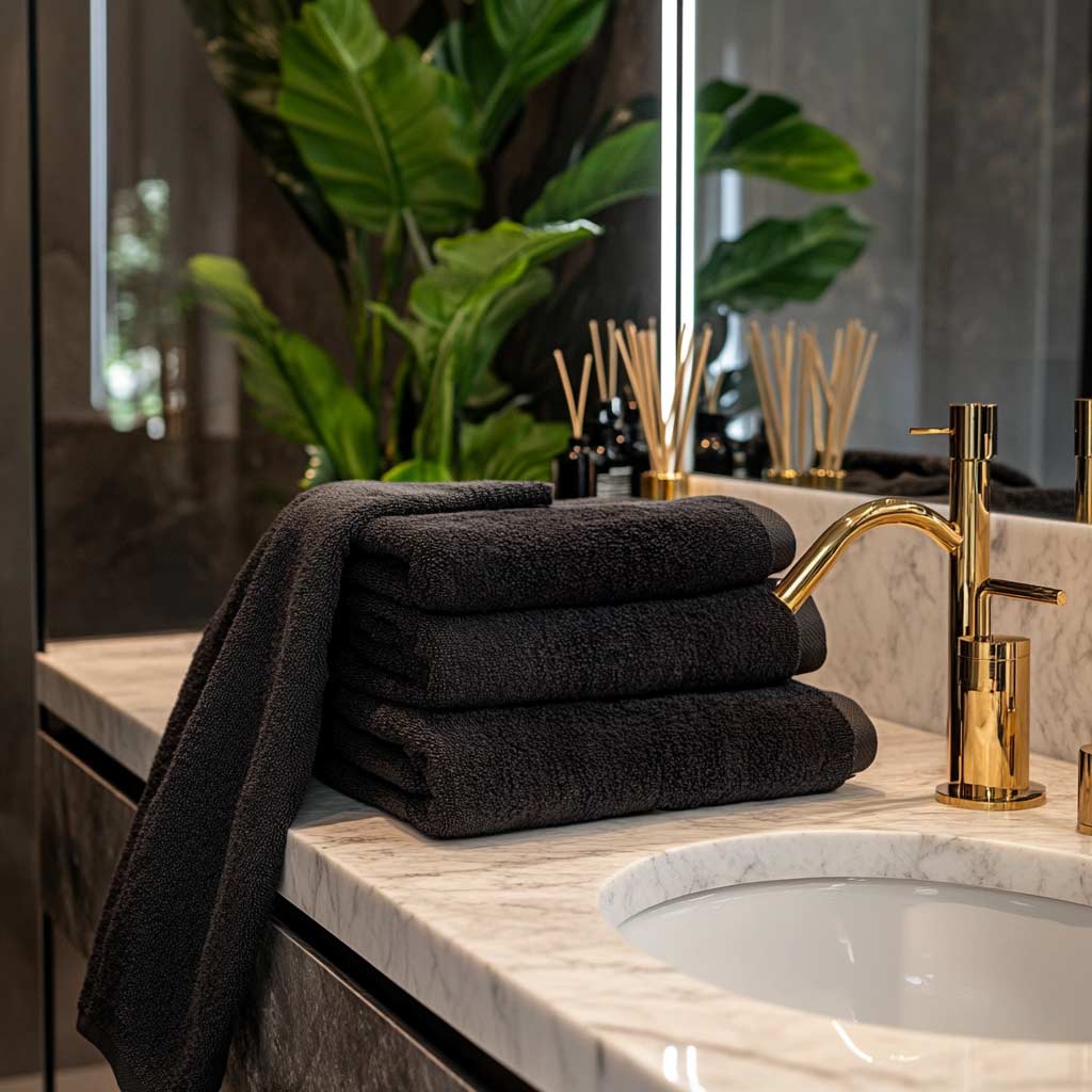 Schwarz Handtuch in Hotelqualität