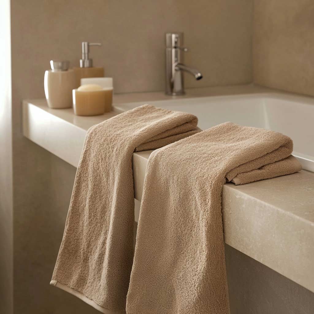 Viele Handtücher fühlen sich nach einigen Wäschen steif und unbequem an. Die Handtücher von Miss Towels bleiben weich, farbecht und luxuriös – auch nach vielen Wäschen. Erleben Sie das frische 5-Sterne-Hotelgefühl jeden Tag bei sich zu Hause.